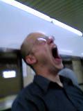 However, when we were on out way home, we were waiting for a train when I decided to snap Mark`s picture unknowingly - as I turned to take the picture, well, he was yawing, but I have never seen anything like his kind of yawn - look at the picture below - he almost looked like he was screaming! I was thinking to enter it into a caption competition - if you have any ideas what might be happening to him please let me know. And he`s probably going to kill me for putting the picture on the web, but it`s just too good not to display!